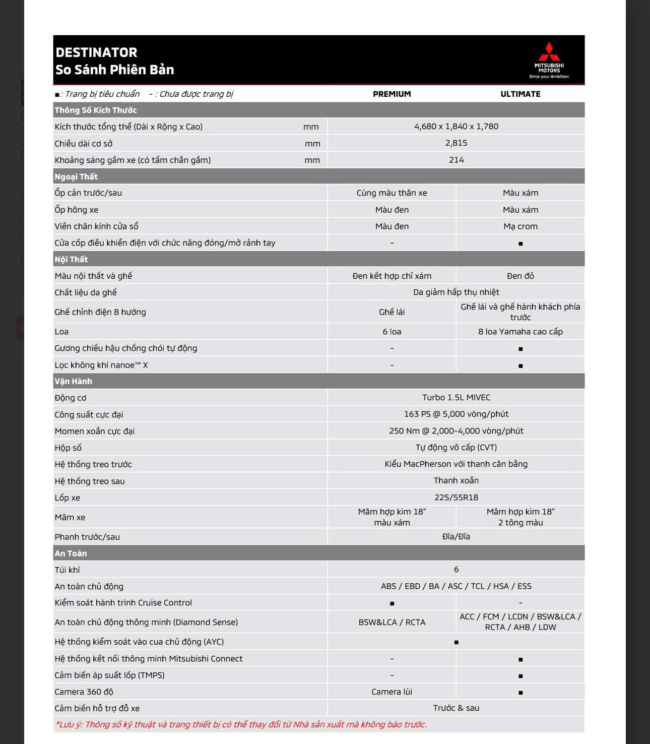 Mitsubishi Destiantor Premium (DST Premium) với mức giá là 780 triệu. Hiện đang bán tại Việt Nam dưới dạng nhậ khẩu nguyên chiếc từ Indonesia. Với 4 tông màu để lựa chọn: Trắng, Đen, Đỏ và Xám.